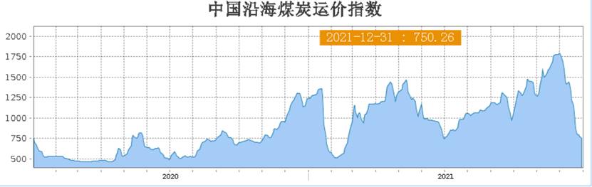 本周,沿海煤炭運(yùn)價(jià)仍然維持跌勢,不過跌幅明顯收窄。截至12月30日沿海煤炭運(yùn)價(jià)指數(shù)為758.65,較上周同期下跌117.66點(diǎn),跌幅13.43%;較上月同期下跌1027.35點(diǎn),跌幅57.52%;較去年同期下跌447.65點(diǎn),跌幅37.11%。