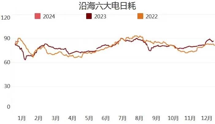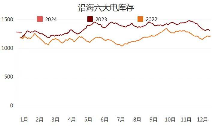截止1月12日,沿海六大電廠日耗85.9萬噸,周環(huán)比下降1.1萬噸,總庫存合計(jì)1276.4萬噸,周環(huán)比上升8.4萬噸?捎锰鞌(shù)14.8周環(huán)比上升0.2天。