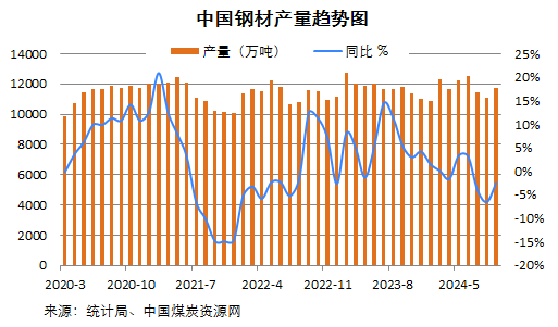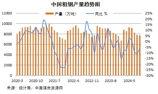 國家統(tǒng)計局?jǐn)?shù)據(jù)顯示,2024年1-10月份,全國焦炭、粗鋼、生鐵產(chǎn)量同比延續(xù)下滑,鋼材產(chǎn)量同比轉(zhuǎn)正。具體來看: