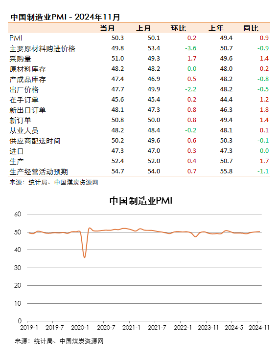 11月份,隨著一系列存量政策和增量政策持續(xù)協(xié)同發(fā)力,制造業(yè)PMI在景氣區(qū)間上行,升至50.3%,擴張步伐有所加快。
