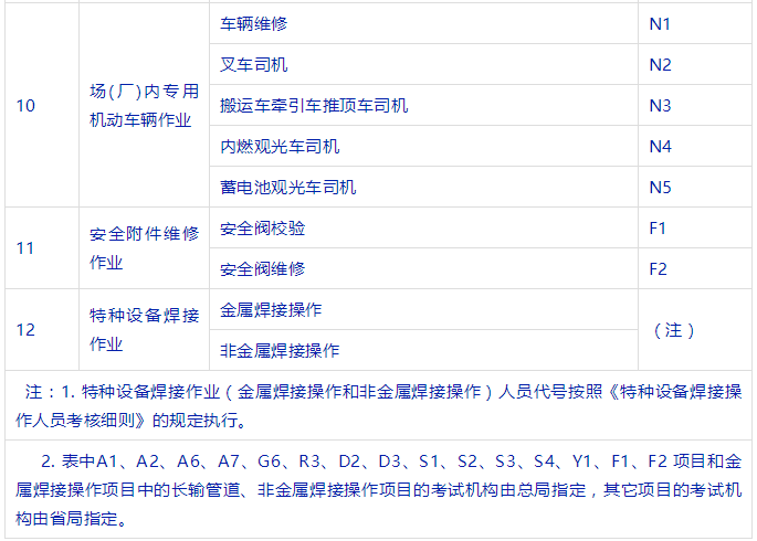 特種設(shè)備安全管理人員、叉車司機、起重機司機、起重機指揮、壓力容器、鍋爐、氣瓶充裝、電梯安裝與維修、觀光車、客運索道操作與修理、大型游樂設(shè)施操作與維修等等。
